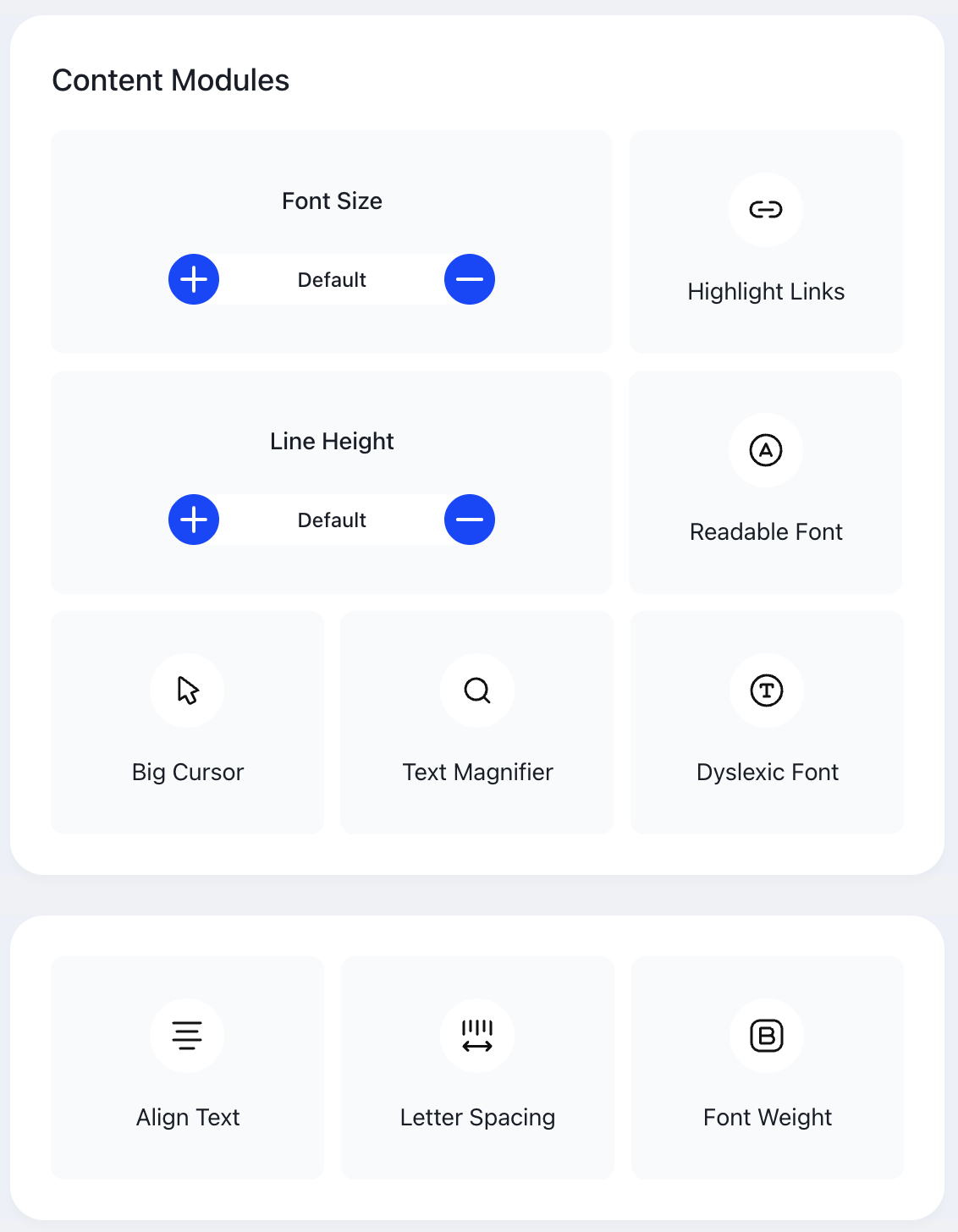 Your website visitors can use the tool themselves to alter your website for their needs. Try it out yourself by clicking the Accessibility icon in the bottom-right of this page.